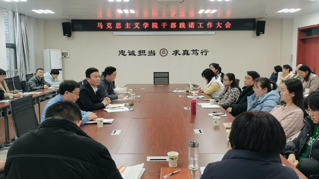 1月20日,马克思主义学院在高新校区博文楼1201会议室召开2023年度干部践诺工作大会,回顾总结2023年度干部承诺工作实效。会议由学院副院长米文科主持。