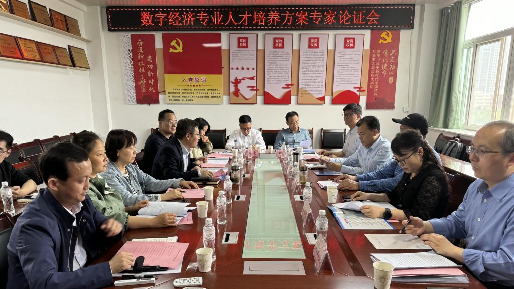 会议第一阶段,刘辉介绍学院学科专业及数字经济专业申报情况,并向与会专家颁发数字经济专业建设顾问委员会专家聘书。经济管理学院副院长刘晓科介绍数字经济人才培养方案制订前期调研情况以及方案主要内容。第二阶段,专家组组长姚波主持方案论证,专家逐一发表意见建议,经讨论并最终形成论证评审意见。