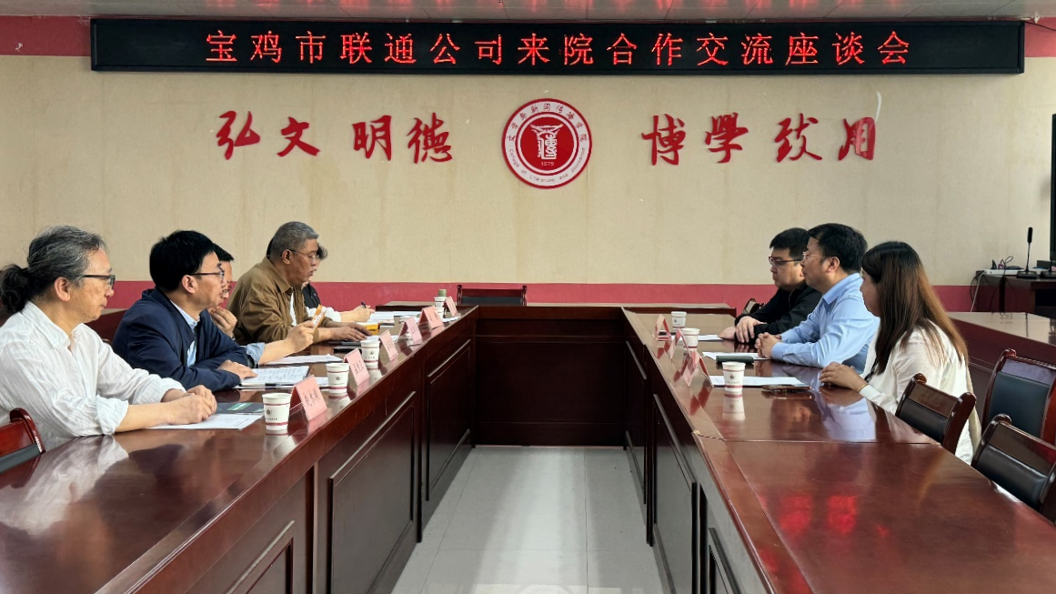 文学与新闻传播学院院长兰拉成对王长安等到访表示欢迎,从专业布局与建设、人才培养、创新创业教育等方面介绍了学院情况,表示学院重视市场对人才需求反应,坚持开门办学,欢迎与宝鸡各界合作育人,希望能借助宝鸡联通公司技术优势,发挥学院人才密集优势,探讨双方互利共赢的合作模式,为宝鸡区域经济生活发展作出更大贡献。王长安从科技服务地方发展等方面介绍了公司在大数据、物联网等方面的技术优势,与西安交通大学、西安邮电大学在合作方式、人才培养方面的成果。文学与新闻传播学院党委书记郭锋航表示,联通宝鸡分公司和学校作为宝鸡市央企与地方高校,有着共同的担当与使命,期待双方进一步合作。