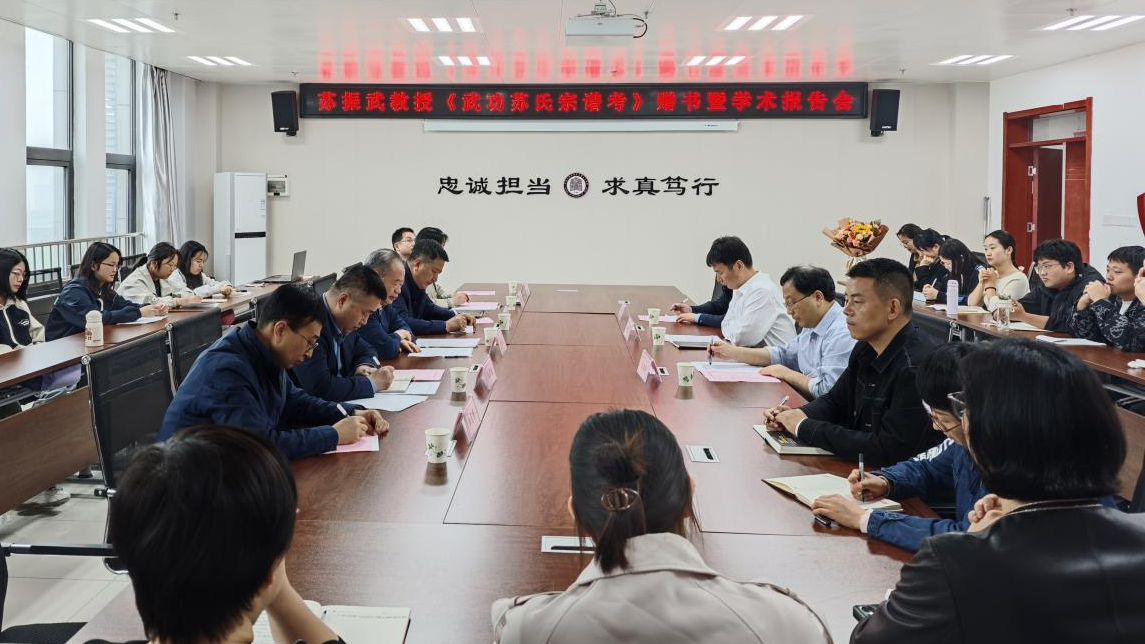 4月29日下午,beat365退休教授、原哲学系主任苏振武《武功苏氏宗谱考》赠书暨学术报告会在高新校区博文楼1201会议室举行。会议由马克思主义学院院长刘晓勇主持。