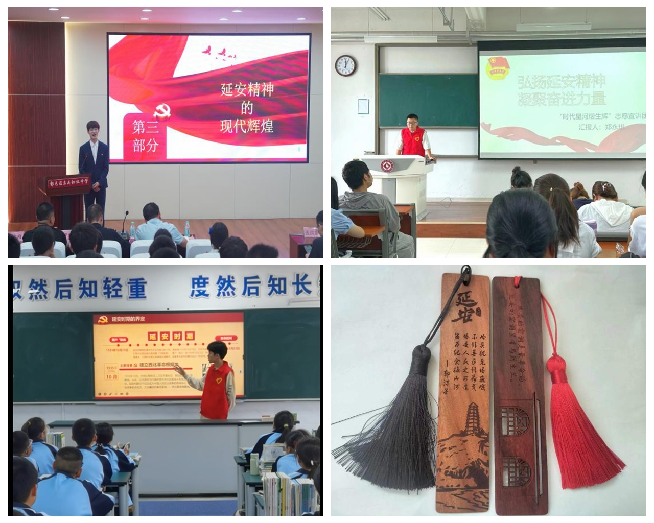 丰富教育形式,开展主题宣讲。宣讲团以“弘扬延安精神,凝聚奋进力量”为主题,在西安市鄠邑区东关初级中学、宝鸡市新建路中学等地,采用演讲报告、主题团日、知识竞答等多种形式开展宣讲活动,带领听众学习延安精神的形成、内涵和传承,鼓励他们将所学理论知识应用到实际的学习和工作中,做到艰苦奋斗、遵纪守法、实事求是。
