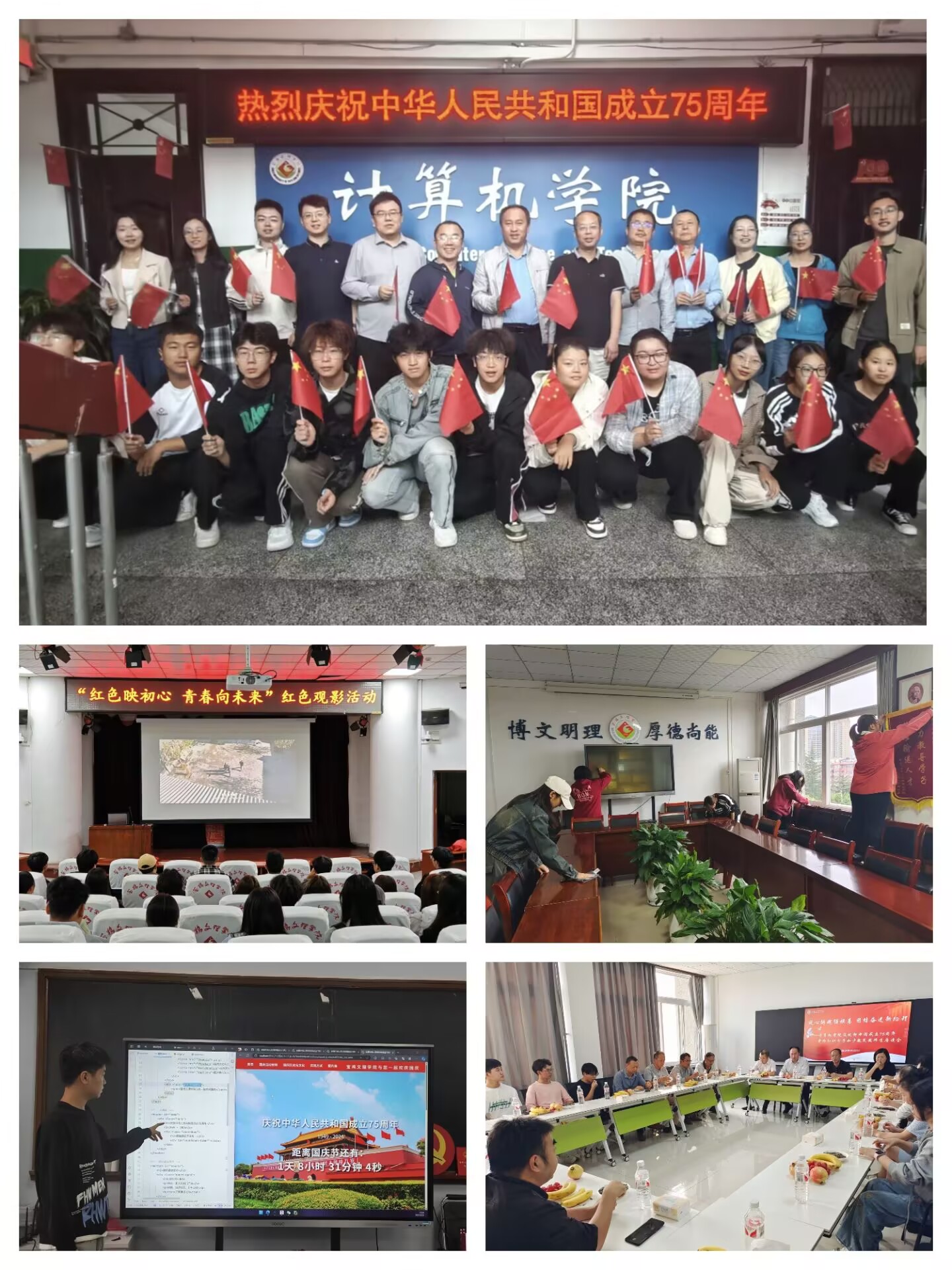 75载栉风沐雨,75载春华秋实。为庆祝中华人民共和国成立75周年,进一步深入学习贯彻习近平新时代中国特色社会主义思想和党的二十届三中全会精神,在国庆节到来之际,计算机学院党委组织开展“七十五载长歌奋进 我与祖国同向同行”系列活动,激发全院师生的爱国之心、报国之志和自豪之情,厚植家国情怀,共谱盛世赞歌。