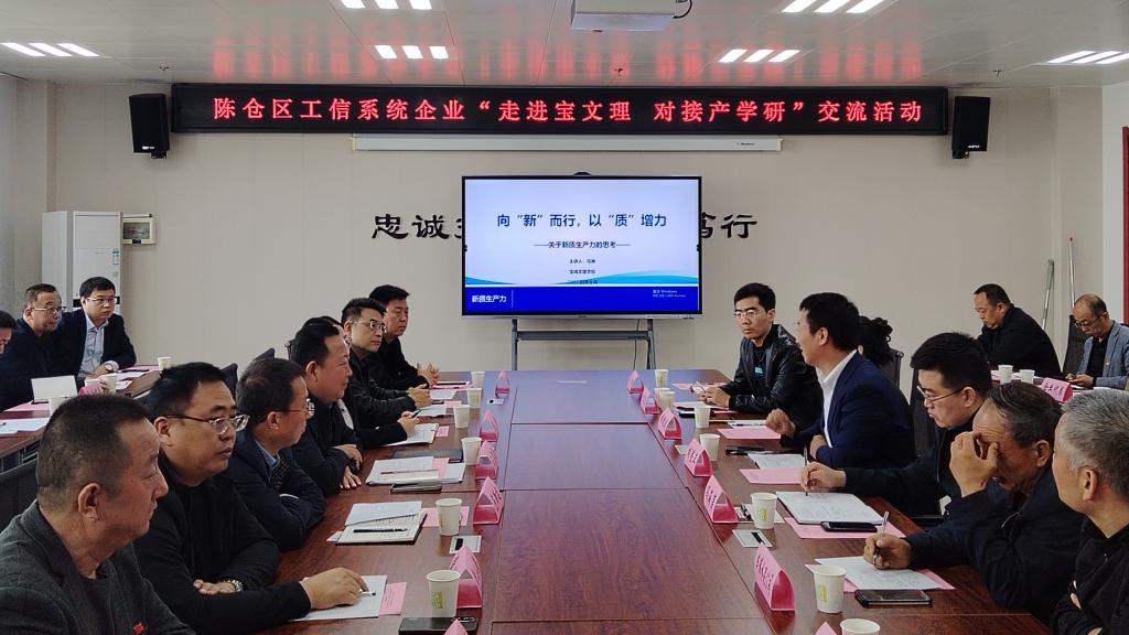 陈仓区工信局局长王宝勋回顾了双方近年来相互走访交流取得的成果,介绍了陈仓区工信局在校地合作、高新技术企业培育、优化营商环境等方面开展的工作和陈仓区产业经济发展情况,并对宝鸡市陈仓区工信系统企业干部职工学习党的二十届三中全会精神读书班提出了要求和期望,希望以这次交流为契机继续深化合作,互帮互助,共同进步。