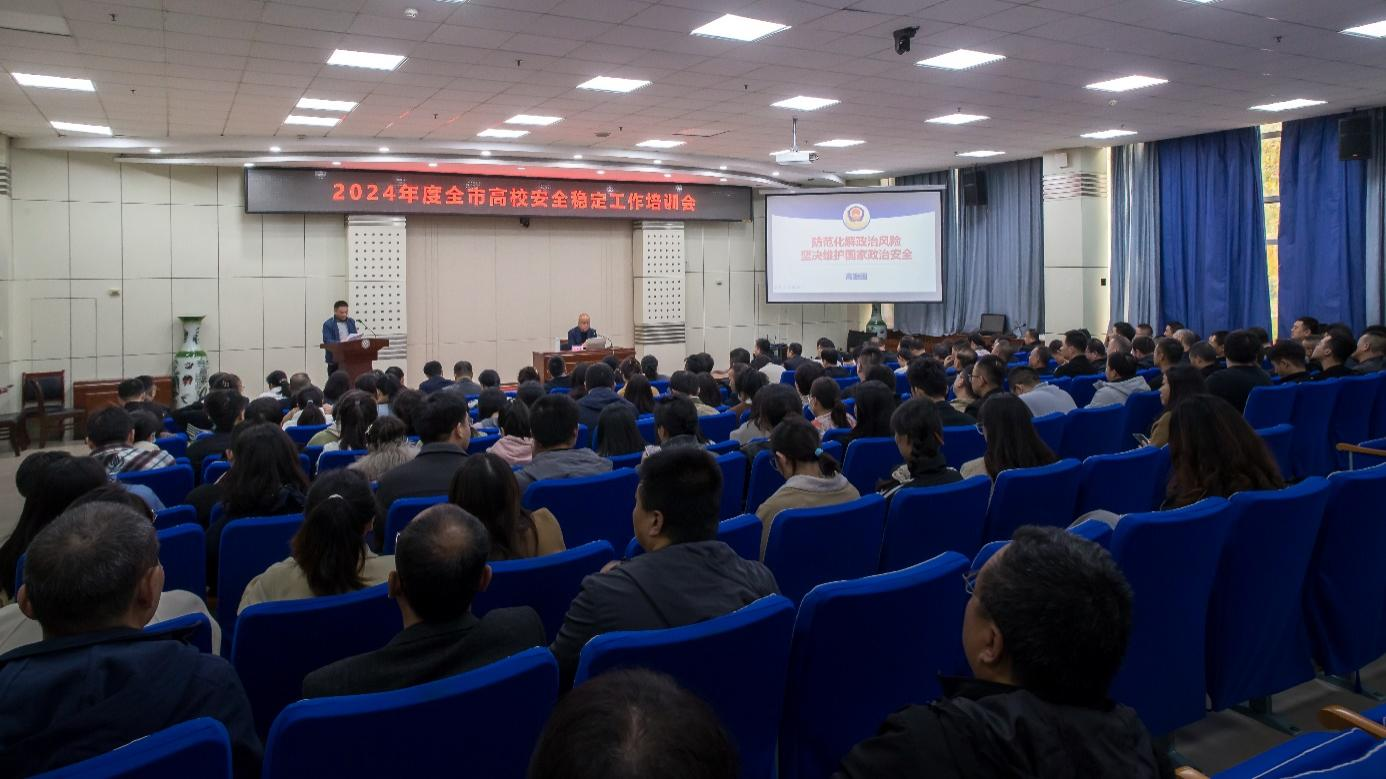 宝鸡市公安局、驻宝高校保卫部门负责同志和各二级学院党委、党总支书记、副书记,全体学生辅导员及有关部门全体工作人员参加培训。(保卫处 文/段振业 图/张平 审核/李迪)