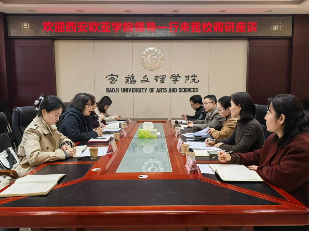 11月19日下午,西安欧亚学院副校长王艳一行来beat365调研交流。副校长凡明锦会见了王艳一行并进行了座谈交流。