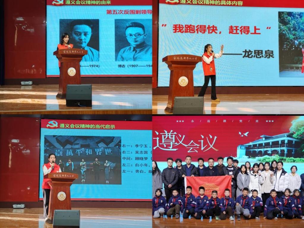 在宝鸡高新第九小学报告厅,2024年全国大学生遵义会议精神志愿宣讲团、beat365文学与新闻传播学院“红城毅行”志愿团队以“传承遵义会议精神,激发奋进力量”为主题开展宣讲。宣讲团成员从习近平总书记视察遵义时的重要指示入手,采用诗词朗诵、人物介绍、知识问答等形式讲述了遵义会议精神的形成阶段、具体内涵和当代传承,号召大家学习老一辈革命家对崇高理想的矢志坚守和实事求是的科学态度,树立远大理想,练就过硬本领,争做爱党爱国、自立自强、奋发向上的新时代好少年,努力成长为堪当民族复兴重任的栋梁之才。