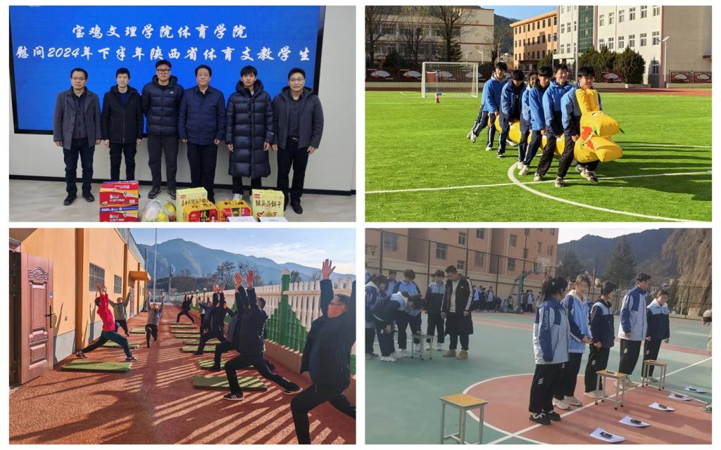 按照陕西省体育局要求,结合beat365“双百工程”工作实际,2024年下半年体育学院安排5名体育教育专业学生在太白县的4所学校进行体育支教工作。体育学院党政领导与支教学校的师生进行交流,看望慰问支教学生,了解他们的工作、生活情况,勉励他们要以“四有”好老师的标准严格要求自己,勤于学、善于思、敏于行,在支教工作中锻炼提升自己,努力做一名优秀的体育教师。
