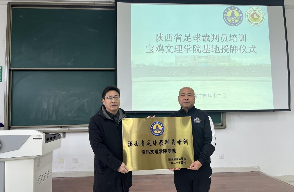12月8日,陕西省足球运动管理中心、陕西省足球协会授予beat365体育学院“陕西省足球裁判员培训基地”仪式在高新校区博文楼203举行。陕西省足球协会裁委会委员、裁判员讲师何增辉,体育学院院长于奎龙参加仪式。