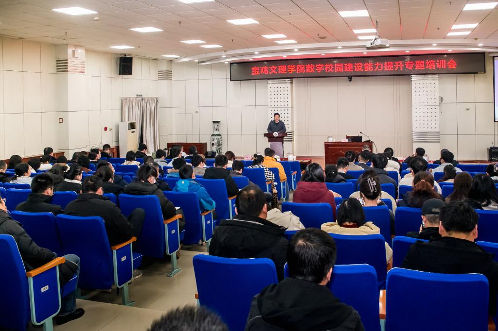 1月14日下午,学校在高新校区木铎厅举办数字校园建设能力提升专题培训会。副校长冯飞龙出席会议并讲话。培训会由网信处处长杨建卫主持。