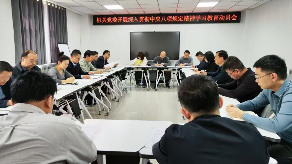 3月25日下午,机关党委召开深入贯彻中央八项规定精神学习教育动员会,启动机关深入贯彻中央八项规定精神学习教育。机关党委委员、所属党支部书记、支部委员参加会议,机关党委书记郝鑫主持会议。