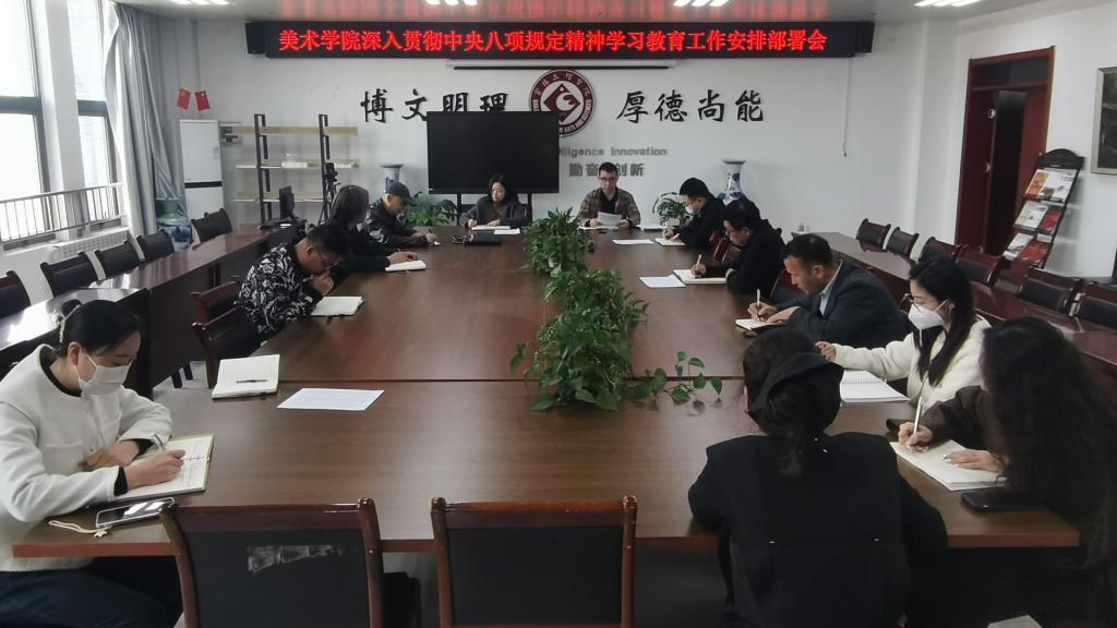 3月25日上午,美术学院党委在博文楼1301会议室召开会议,启动部署学院深入贯彻中央八项规定精神学习教育工作。学院领导班子、党委委员、各支部书记、支部委员以及全体科级干部参加会议。学院党委书记崔小丽主持会议。