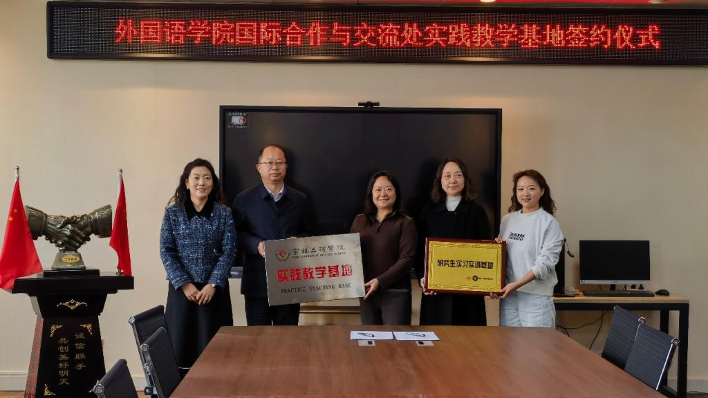 3月27日,外国语学院与国际合作与交流处在博文楼国际处会议室举行实习实训基地暨实践教学基地签约授牌仪式。