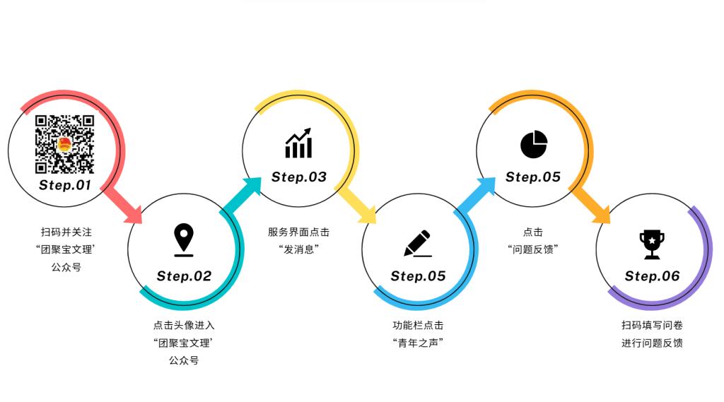 近日,校团委在“团聚宝文理”官方微信公众号开通了学生线上权益维护平台,广大团员青年可以通过扫码问卷的形式快速反映思想、学习、生活等方面的困难和问题,“权小益”将以周为单位将热点问题和解决情况向广大同学通报,具体操作如下: