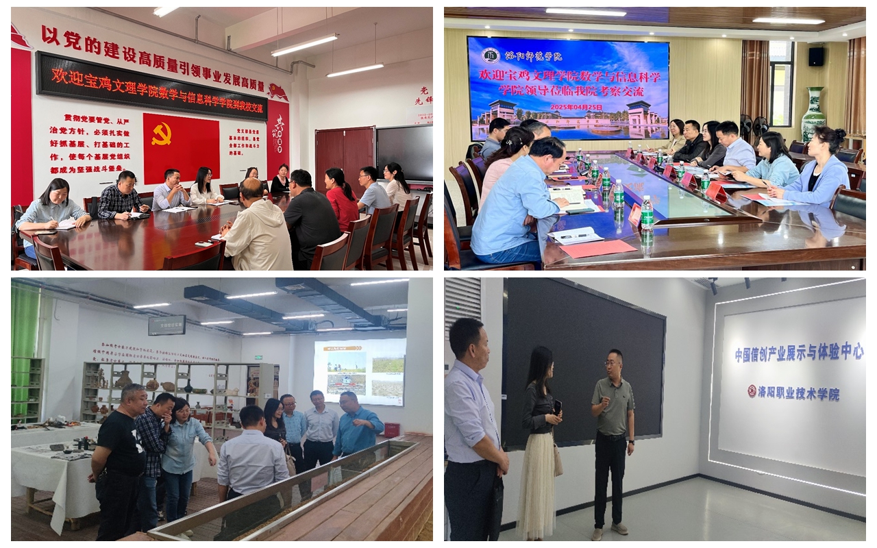 4月24日至25日,数学与信息科学学院一行6人赴洛阳理工学院、洛阳师范学院和洛阳职业技术学院针对人才培养、产教融合、实习实训、校企合作等进行了考察交流。