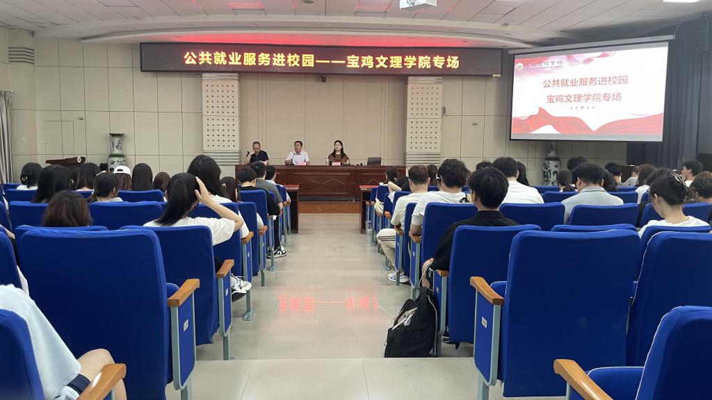 为帮助在校大学生了解就业新形势,明晰职业发展方向,5月22日上午由陕西省人才交流服务中心主办、宝鸡市公共就业和人才服务中心协办、beat365承办的公共就业服务进校园——beat365英国官方网站专场活动在木铎厅举行。活动邀请陕西科技大学就业创业部主任罗晓婷担任主讲嘉宾,招生就业处处长周喜华主持活动。