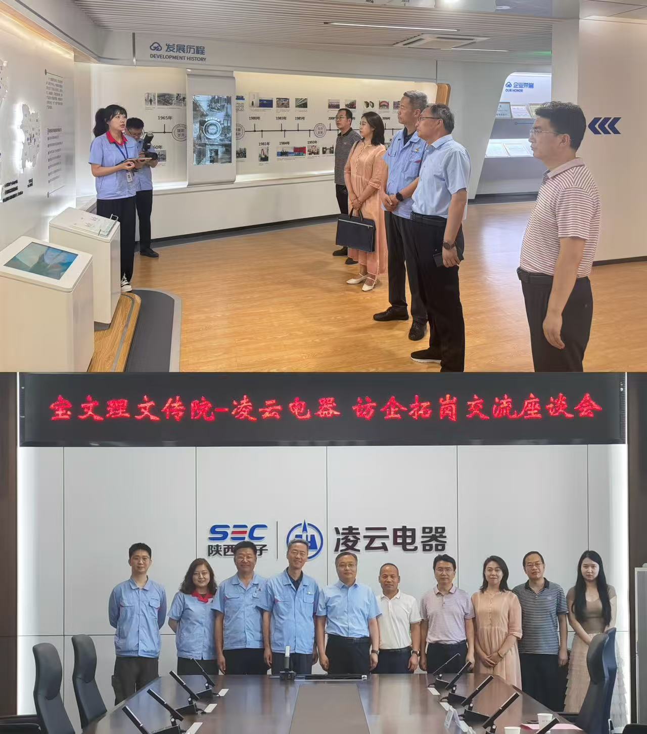 在陕西凌云电器集团有限公司有关负责人的带领下,学院一行参观了集团科技文化展馆,通过历史档案、实物展陈了解企业成长历程和主要产品,真实感受凌云“技术报国”精神传承与使命担当。