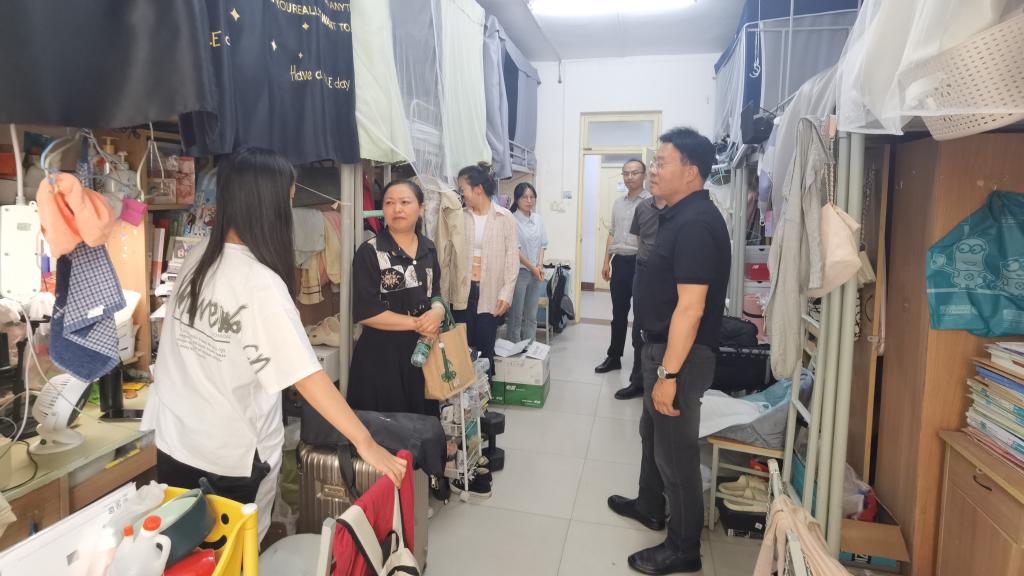 6月16日下午,校党委副书记韩干校前往外国语学院融语社区与2022级英语(优师)1班学生代表进行座谈交流,指导学业发展,并走访学生宿舍。