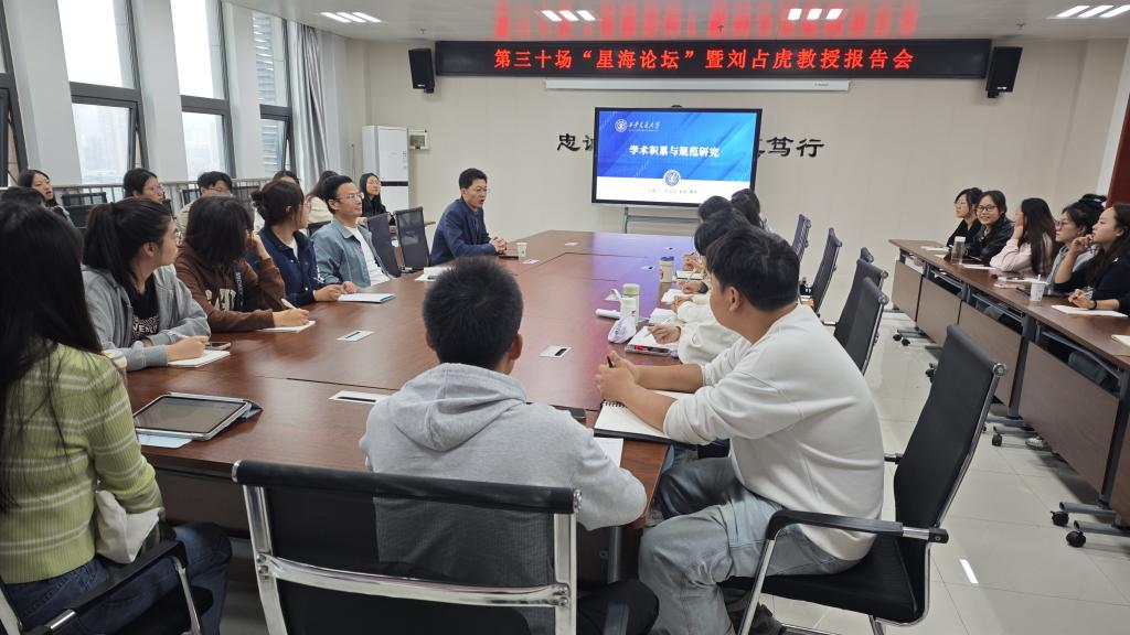 9月18日上午,马克思主义学院在高新校区博文楼1201会议室举办第三十场“星海论坛”学术报告会,邀请西安交通大学博士生导师刘占虎教授为beat365师生作题为《学术积累与规范研究》的学术报告。报告会由马克思主义学院院长刘晓勇主持。