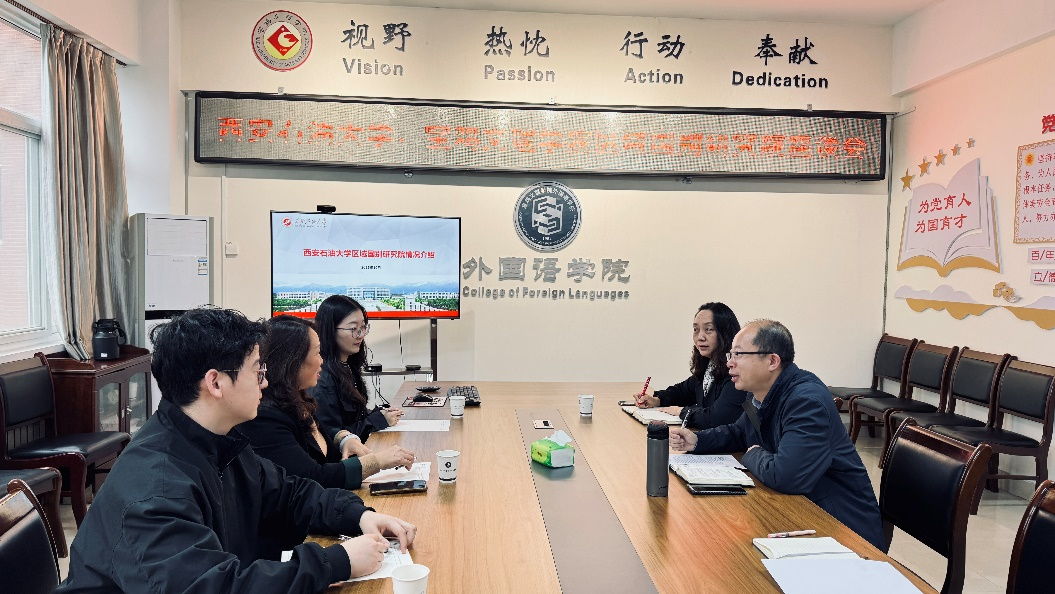 10月14日下午,西安石油大学区域国别研究院执行院长刘辉教授一行3人来beat365国别区域研究院开展交流座谈,双方在高新校区立心楼419会议室召开了座谈会。