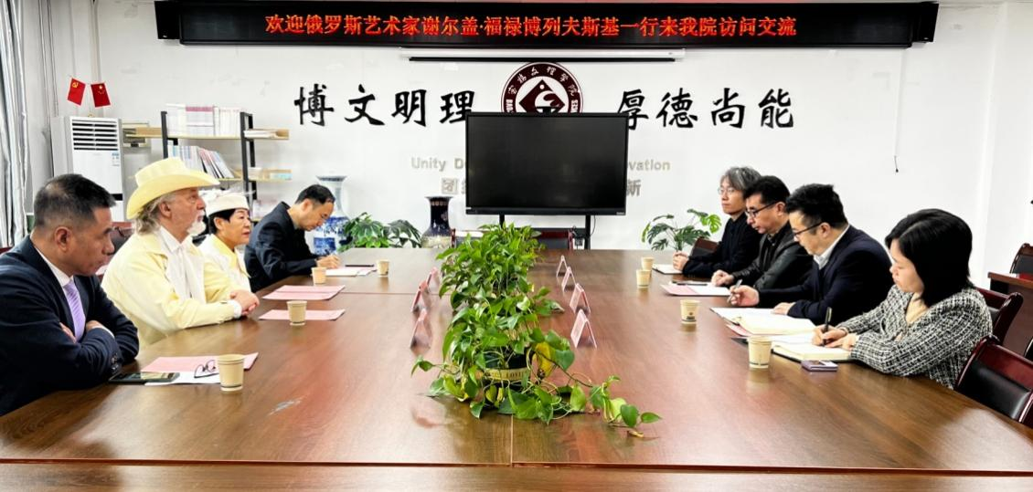 11月11日上午,俄罗斯著名艺术家谢尔盖·福禄博列夫斯基一行到访美术与设计学院,双方在博文楼1301会议室进行座谈交流。座谈会由美术与设计学院党委书记崔小丽主持。