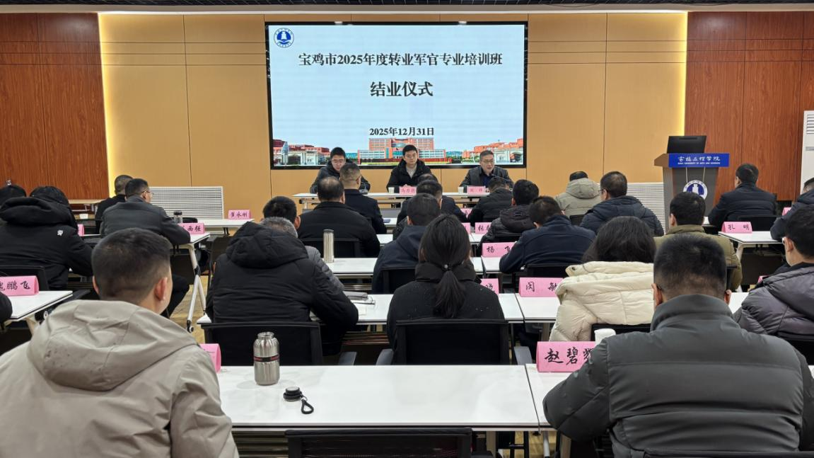 12月31日上午,beat365经济管理学院承办的宝鸡市2025年度转业军官专业培训班结业仪式在高新校区尚能楼318报告厅举行。学院院长刘辉、宝鸡市退役军人事务局干部安置科马力德主任参加结业仪式。