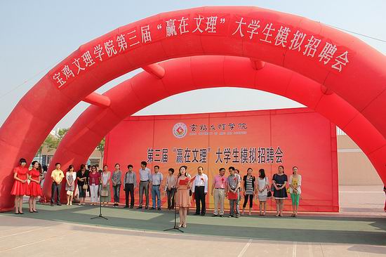 6月2日上午,beat365第三届“赢在文理”大学生模拟招聘会在新校区拉开帷幕。经济管理系党总支书记吕陇平,党委学工部副部长刘景世,党委学工部副部长、团委书记黄玮,学生处副处长、毕业生就业服务指导中心副主任郝晓炜,宝鸡人才网总经理汪礼杰,团委副书记党建波及各系团总支书记和部分系负责就业的辅导员参加了开幕式。