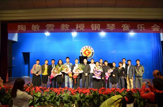 陶敏霞系西安音乐学院键盘系教授、硕士研究生导师。音乐会在陶敏霞教授演奏的《C大调钢琴奏鸣曲》K330中拉开帷幕。该曲是18世纪奥地利作曲家,钢琴家莫扎特在巴黎所创作的。乐曲以开朗光明为主基调,乐句造型精美,文雅而富有深度,表现出作曲家天使般的纯净心灵。她演奏的具有广东特色的《平湖秋月》以乐观、诙谐和优美的旋律将波光粼粼、闪烁不定的景象呈现在观众的眼前。一首富于东方情调的《夕阳萧鼓》,以飘逸潇洒的音色及新颖别致的风格向观众描绘了中国秀丽的山川景色。