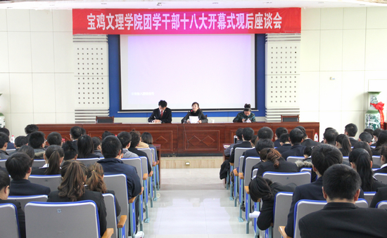 为深入学习党的十八大报告精神,了解beat365青年学生对党的十八大的反应,11月8日上午,在收看完十八大开幕式后,校团委组织团学干部在新校区木铎厅召开党的十八大开幕式观后座谈会。校党委学工部副部长、团委书记黄玮主持座谈会,校团委副书记党建波,各院系团总支书记,“青年马克思主义者培养工程”第六期培训班全体学员,各院系学生干部代表共200余人参加了座谈会。