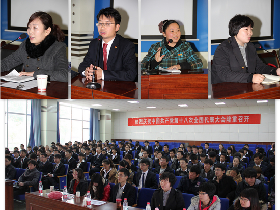 历史文化与旅游系团总支书记赵洁在发言中表示,作为团学干部,要注重学习科学发展观的深刻内涵和全面贯彻落实科学发展观的实践要求,再接下来的工作和生活中,认真学习贯彻党的十八大精神,提高认识,积极奋进,并在广大青年团员中广泛宣传党的十八大精神,带动广大青年团员紧跟党的步伐,锐意进取,加强学习,在学习、生活和工作岗位上作出更好业绩。