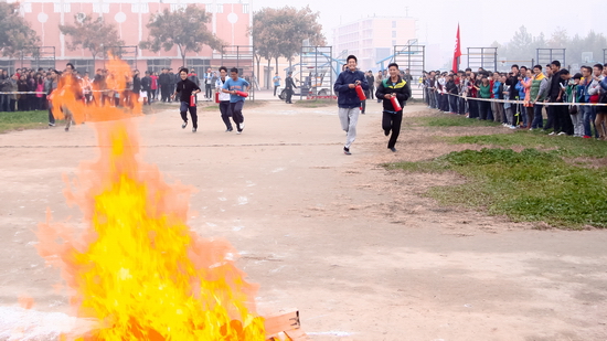 本消防培训演练及趣味运动会共分为消防智力竞赛、火场逃生演练和消防趣味运动会四个比赛项目。运动会上,专业人员为师生讲授了消防安全常识、火灾初期的扑救及常用灭火器的正确使用方法和注意事项。随后,现场组织开展了消防知识竞答比赛,师生们积极踊跃抢答,气氛热烈。15:30,随着一声哨响,300余名师生井然有序的从“四为园”模拟火灾现场场撤离,2分钟后全部到达操场“安全”地带,并立即展开了火灾扑救即趣味运动会。为调动师生们的参与积极性,运动会精心设计穿越火线、接力灭火等比赛项目,体育系、物理与信息技术系、化学与化工学院和新老校区学生公寓、图书馆等6个代表队分别获得比赛优胜单位。师生纷纷表示,在参与活动的过程中了解了消防知识,在今后的学习、工作和生活中一定会更加重视消防安全,为构建平安、和谐校园献出自己的一份力量。