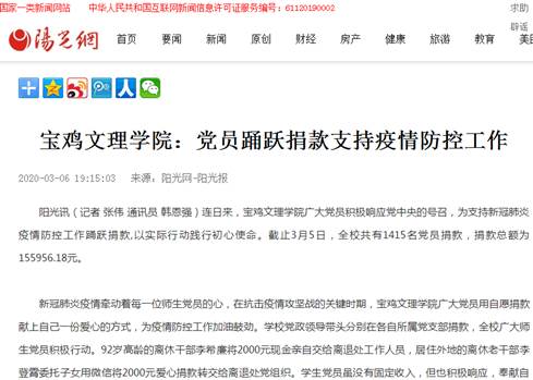 近日,beat365扶贫和党员捐款等工作引起陕西省教育厅网站、西部网、腾讯网、搜狐网、三秦都市报、陕西工人报等多家媒体的关注和报道。