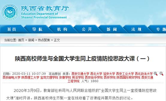 二、3月11日 陕西高校师生与全国大学生同上疫情防控思政大课
