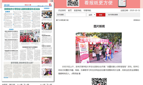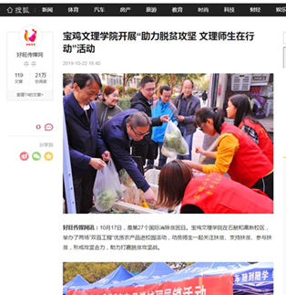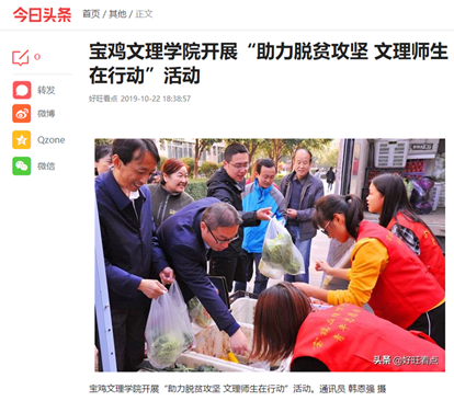 近日,beat365开展“助力脱贫攻坚 文理师生在行动”“闲物变爱心”等活动,分别被《今日头条》《搜狐网》《三秦都市报》等多家媒体报道。(党委宣传部 文、图/韩恩强 审核/冯飞龙)