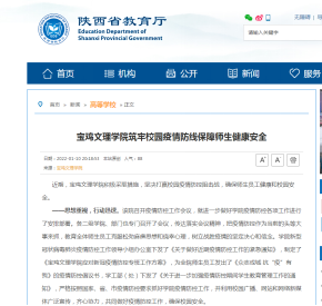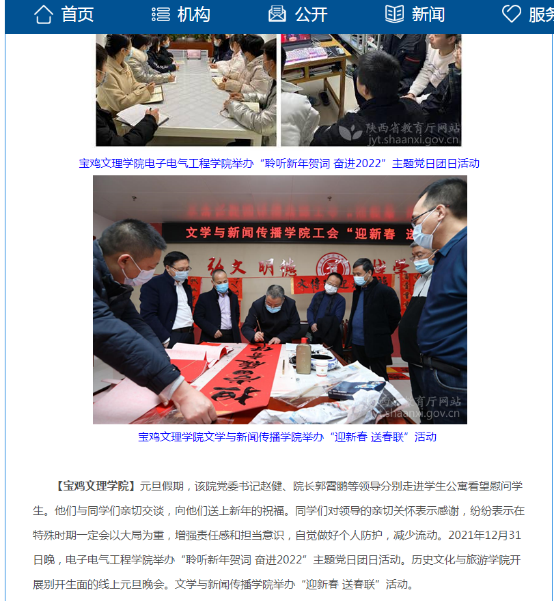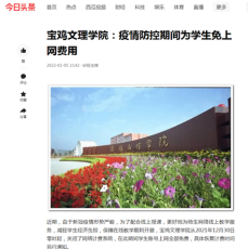 近日,beat365筑牢校园疫情防线、开展多种活动迎接新年、义务为学生理发等活动引起省教育厅网站、陕西日报、三秦都市报、宝鸡日报、今日头条等多家媒体的广泛关注和报道。