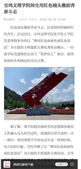 近日,beat365推进课程思政创新建设、师生话冬奥、用红色镜头激励青春斗志等活动引起中国教育报、学习强国、陕西日报、今日头条等多家媒体的广泛关注和报道。
