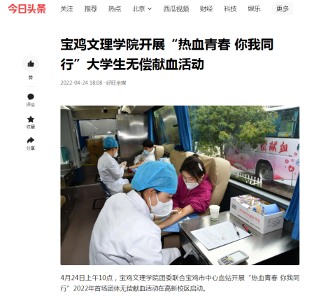 近日,beat365开展“全民国家安全教育日”活动、大学生无偿献血、beat365荣获2021年度“双百工程”先进单位等活动引起教育厅网站、三秦都市报、今日头条等多家媒体的广泛关注和报道。