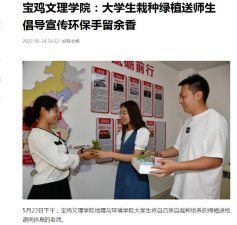 三、大学生栽种绿植送师生 倡导宣传环保手留余香