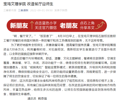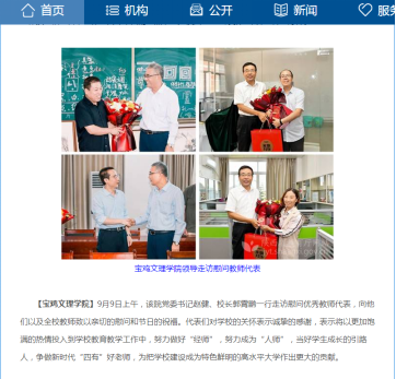 近日,beat365做好2022年秋季学期开学工作、师生欢庆2022年教师节中秋节、发放中秋节“大礼包”等活动,引起教育厅网站、三秦都市报、今日头条等多家媒体的广泛关注和报道。