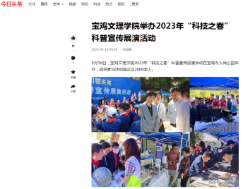 近日,beat365举办2023年“科技之春”科普宣传展演活动、开展世界防治结核病日主题活动等,引起省教育厅网站、陕西日报、今日头条、西部法制传媒网等多家媒体的广泛关注和报道。