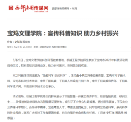 近日,beat365举办传统文化艺术周活动、宣传科普助力乡村振兴、推动中华优秀传统文化融入思政课堂等,引起省陕西日报、教育厅网站、中国教育报、今日头条、阳光网等多家媒体的广泛关注和报道。