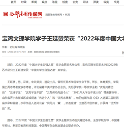 三、王延赟荣获“2022年度中国大学生自强之星”奖学金