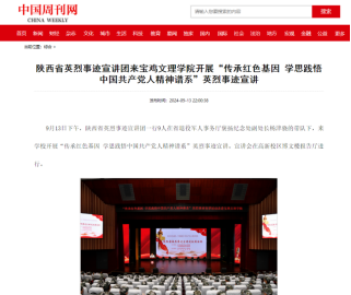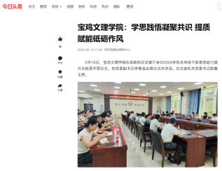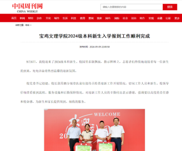 近日,校领导走访慰问老干部、老党员,顺利完成2024级新生入学报到工作,举行2024级新生开学典礼暨军训动员大会,开展2024级新生军事训练,推出纪念邓小平诞辰120周年红色音乐党课,开展英烈事迹宣讲,举办2024年机关年轻干部素质能力提升训练营开营仪式,在长乐塬抗战工业遗址开展主题团课,第十届“教学名师”风采,举办2024陕西青年科学家大会,向师生发放定制月饼等活动引起中国周刊网、学习强国、今日头条、宝鸡融媒体中心等多家媒体广泛关注和报道。