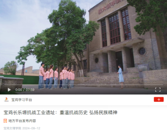 学习强国——宝鸡学习平台 链接:https://article.xuexi.cn/articles/index.html?art_id=12594430369583907992&item_id=12594430369583907992&cdn=https%3A%2F%2Fregion-shaanxi-resource&study_style_id=video_default&pid=&ptype=-1&source=share&share_to=wx_single