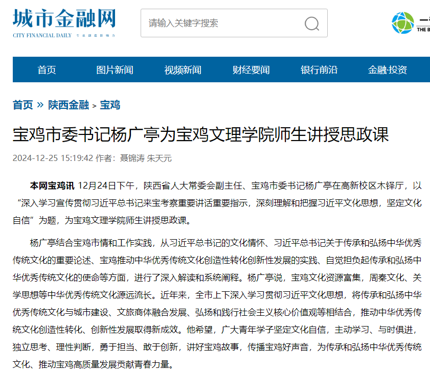 一、宝鸡市委书记杨广亭为beat365师生讲授思政课