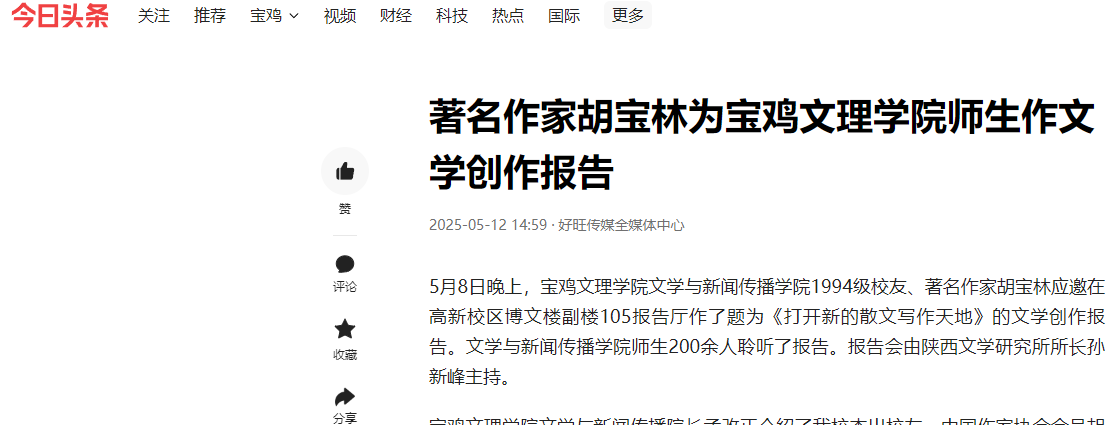 2.今日头条-三秦都市报城事 链接:https://www.toutiao.com/article/7504941569720517129/?share_did=MS4wLjACAAAA89uJuFt8i0BPb_ScOfrmbwKMY1iXcwICjyNnCv8mgTk&upstream_biz=client_share&app=news_article×tamp=1747380607&share_uid=MS4wLjABAAAAMty6bCBWWKqe9dj8i2RFPpDKSq2yPtgdeAOqSoPcVGBBCsPEW_4vk1WFigUO1wlf&category_new=profile_all&share_token=7eff4021-5b28-4c5e-9b9b-a67a2d699c90&source=m_redirect