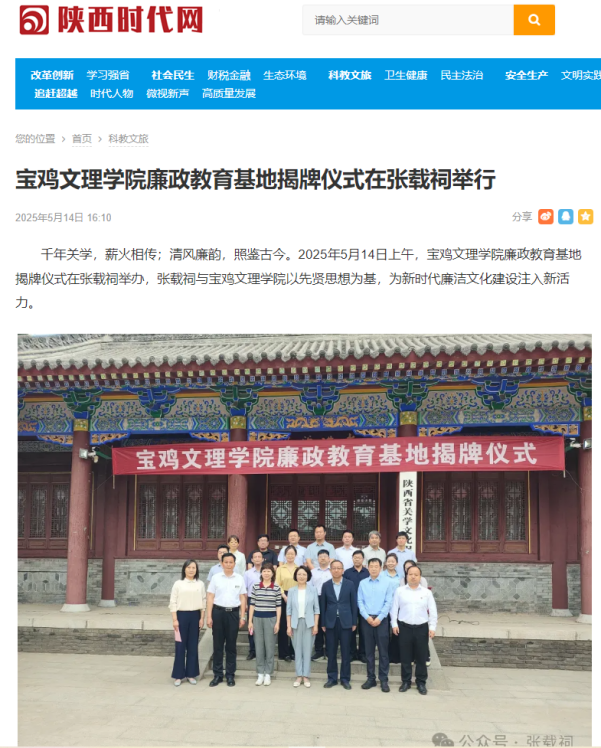 一、beat365廉政教育基地揭牌仪式在张载祠举行