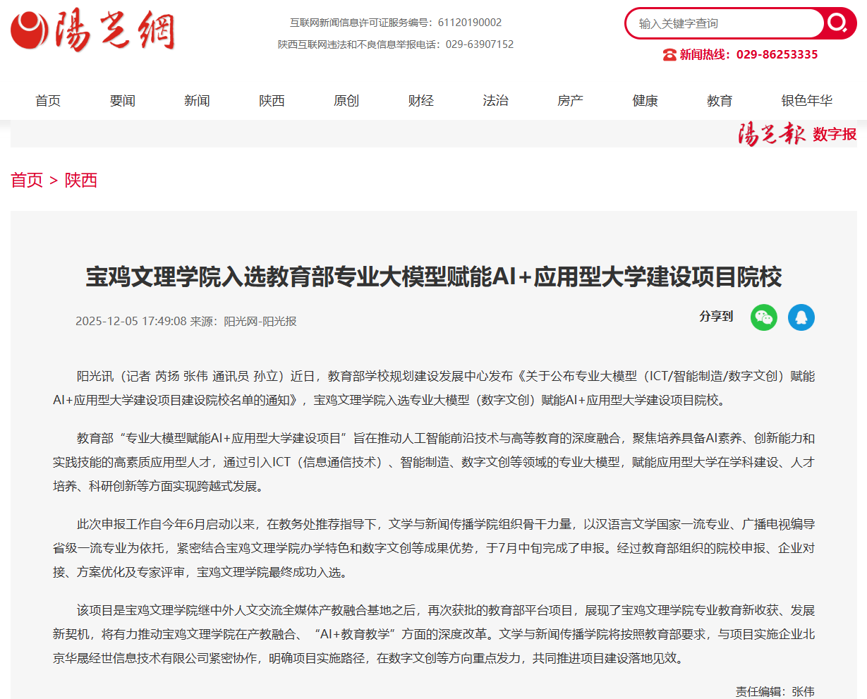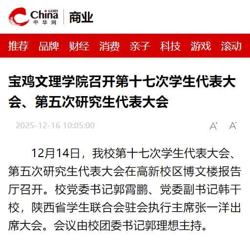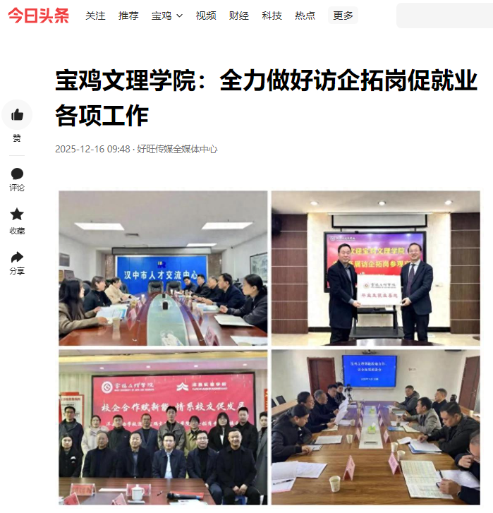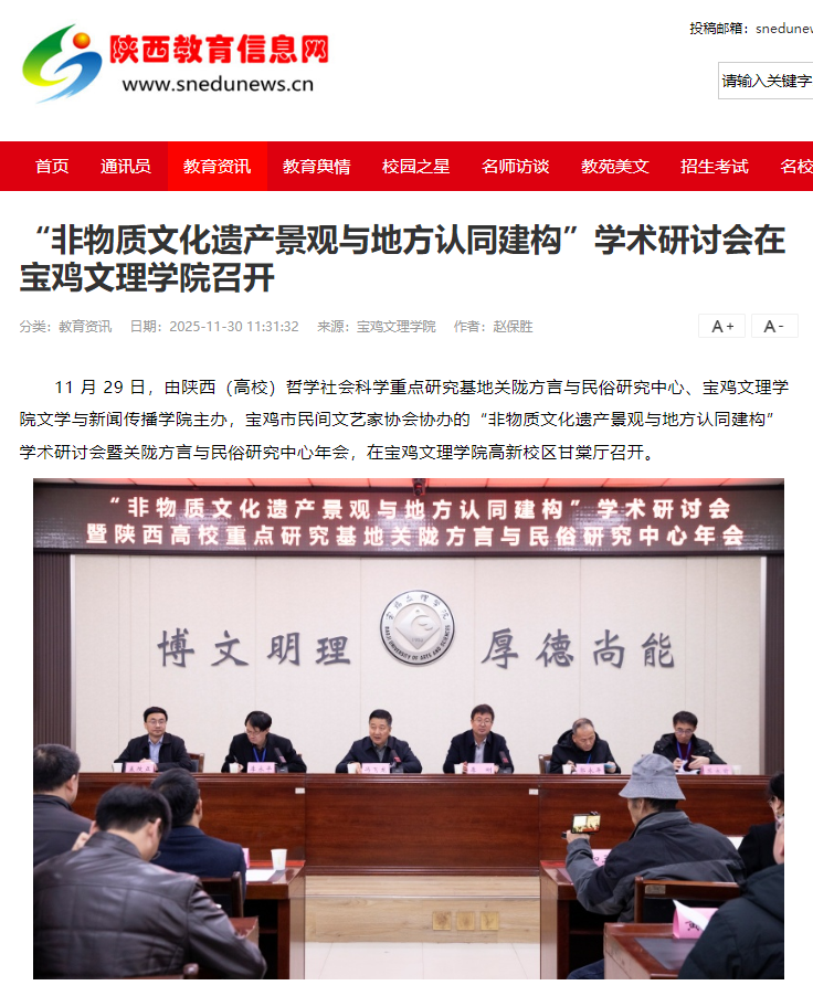 近日,学校召开第十七次学生代表大会、第五次研究生代表大会,入选教育部专业大模型赋能AI+应用型大学建设项目院校,全力做好访企拓岗促就业各项工作,“绿色无毒 法润三秦”百场行关中专场走进beat365,“非物质文化遗产景观与地方认同建构”学术研讨会在学校召开等活动引起陕西教育信息网、阳光网、三秦都市报、起点新闻、视界观、中华网、今日头条等多家媒体广泛关注和报道。