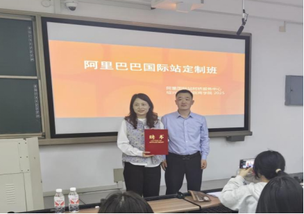 开班仪式上,邵青副院长着重强调了实践教学的重要性,并指出,同学们在学校课堂上进行了理论知识的学习,而这个定制班将成为同学提升实践能力的平台,大家务必重视理论与实践的结合。杨芬总经理也对此观点表示赞同,凭借她在阿里巴巴21年的丰富从业经验,进一步阐述了实践的关键作用。仪式上邵青代表学院向企业讲师颁发了校外企业导师证书,杨芬代表企业讲师接受了证书。