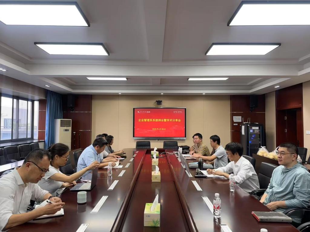 4月30日下午,企业管理系举行系部例会暨学术分享会。学院党委书记徐青莅临会议并指导工作,副院长丁志刚、系主任赵江以及全体企管系教师参加会议。