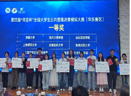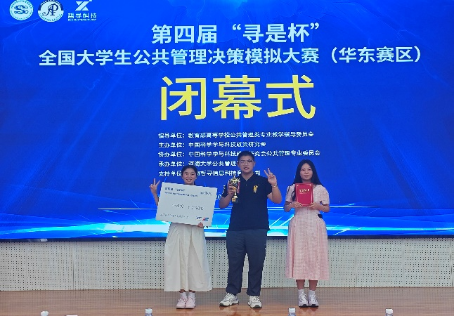 6月7日至8日,由教育部高等学校公共管理类专业教学指导委员会作为指导单位,中国科学学与科技政策研究会主办,中国科学学与科技政策研究会公共管理专业委员会协办,河海大学公共管理学院承办,上海哲寻信息科技有限公司提供技术支持的第四届“寻是杯”全国大学生公共管理决策模拟大赛(华东区域赛)在河海大学(江宁校区)成功举办。在本次比赛中,由1991cc金沙(法学院)罗志文老师和邵青老师指导,公共事业管理221邵东浩、公共事业管理241陈睿娇、公共事业管理242豆佳佳3名同学组成的参赛队,通过默契协作,最终荣获大赛一等奖。